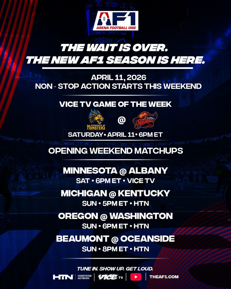 The wait is over. Arena Football One (AF1) is back! The 2026 season kicks off this weekend with four can’t-miss matchups that promise to deliver fast-paced, high-scoring action to fans across the country.